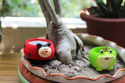 Wonderland Poly resin frog & ladybug pot ( set of 2 each ) 2 inches for Bon...