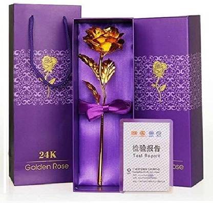 INTERNATIONAL GIF Gold Plated Rose with Carry Bag (25 cm, Gold) Exclusive G...