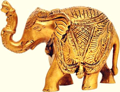 Luxe Mart Gold Elegant Elephant Brass Statue Showpiece Sculpture Lucky Figu...