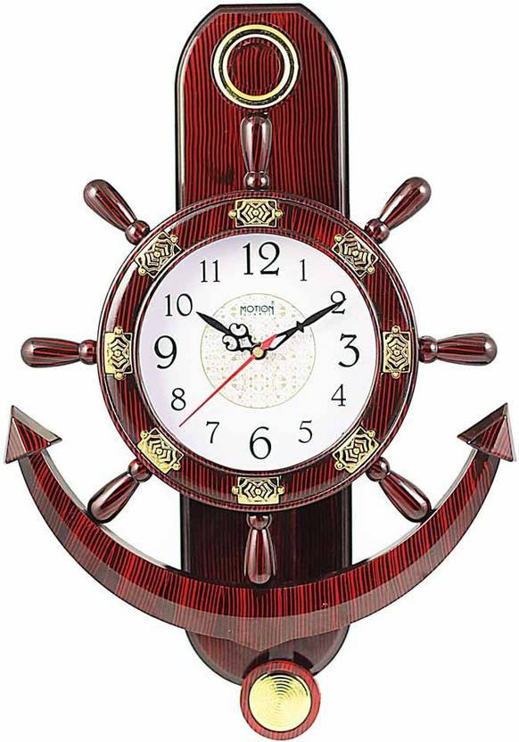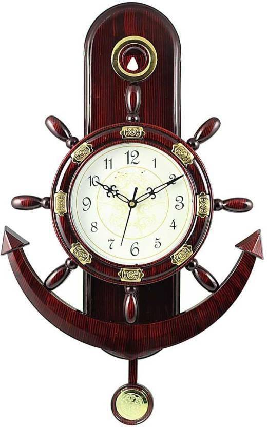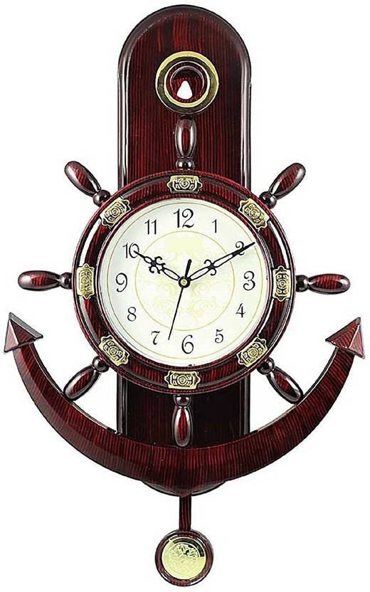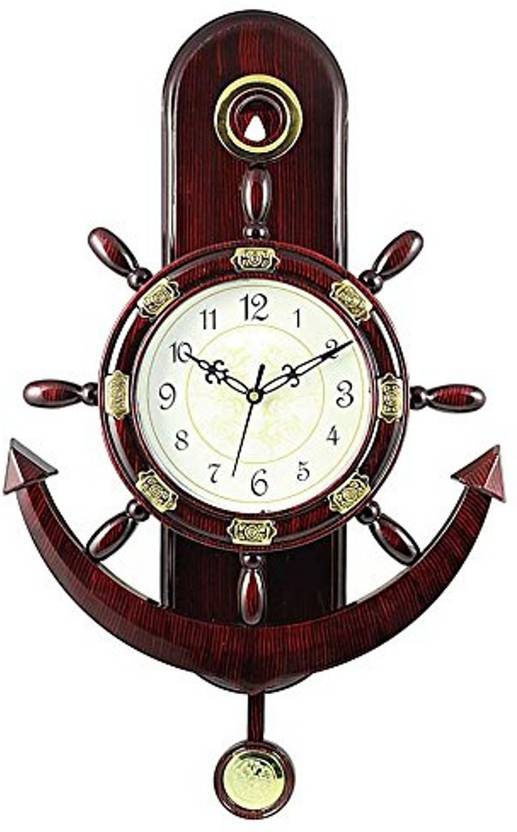 A&A Plaza Pendulum Wall Clock Analog 36 cm X 32 cm Wall Clock (Brown, With...