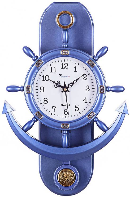 Factorywala Analog 40 cm X 30 cm Wall Clock (Blue, With Glass)