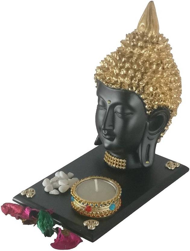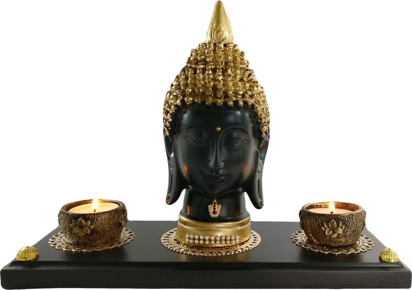 Sacred Blessings Buddha Black Face Golden Head Idol on Tray 15.24 cm(L) X 1...