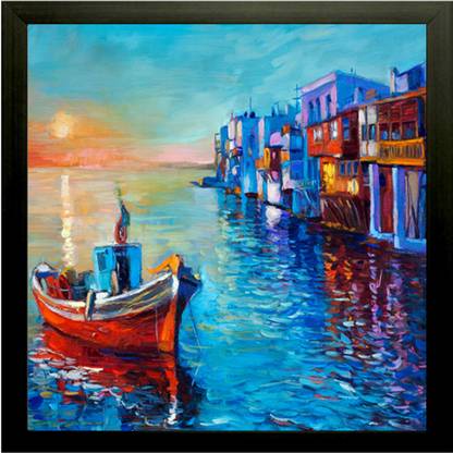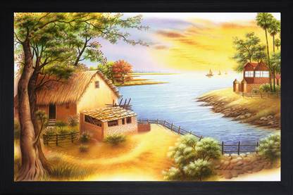 SAF Rajsthani Village Large Synthetic Framed UV Digital Reprint 14 inch x 2...