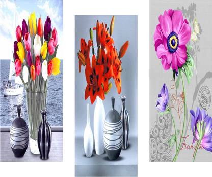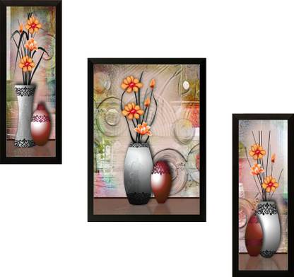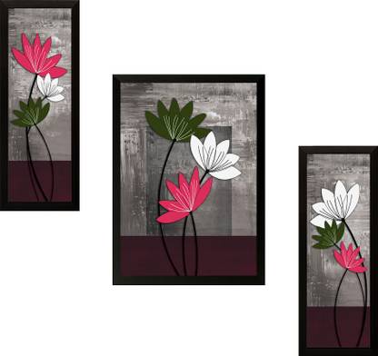 SAF Floral 6MM MDF Framed set of 3 Digital Reprint 15 inch x 18 inch Painti...