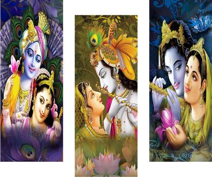 SAF Radhey Krishna 6MM MDF Framed set of 3 Digital Reprint 15 inch x 18 inc...