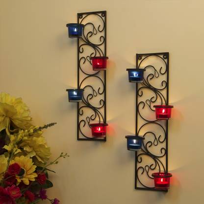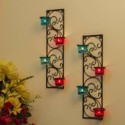 Homesake Wall Hanging Twisted Petals Tea Light Candle Diya Holders, Set of ...