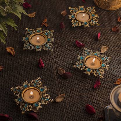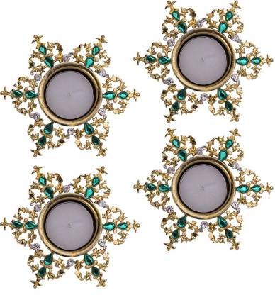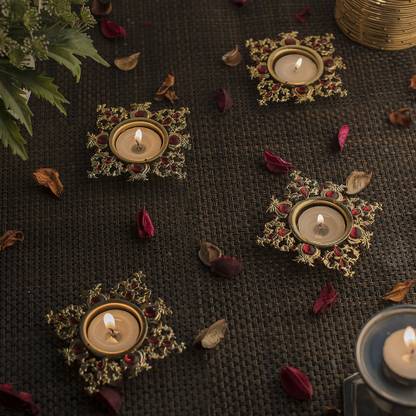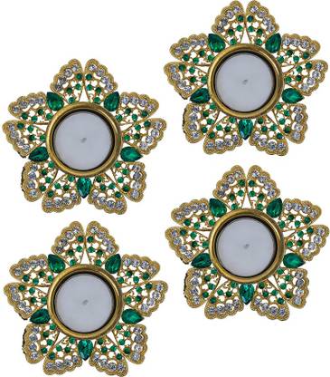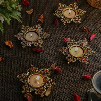 Homesake Crystal Floral Vine Tea Light Candle Holders, Decorative Diya for ...