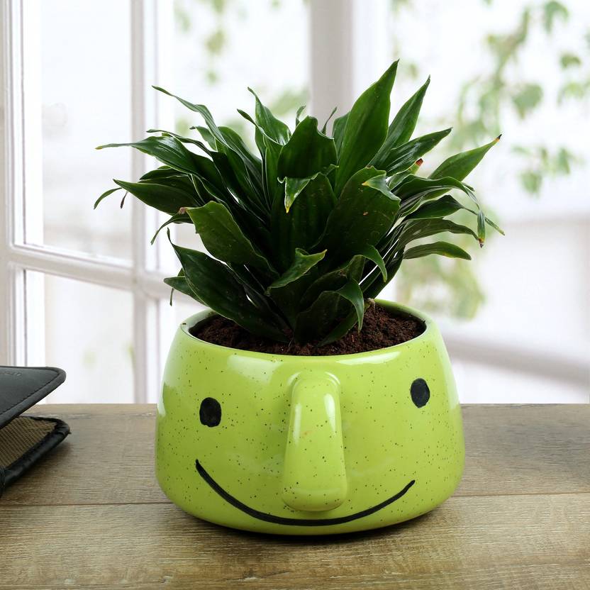 Ferns N Petals Dracaena Compacta In Smiley Vase Plant (Yes Pack of 1 Folia...