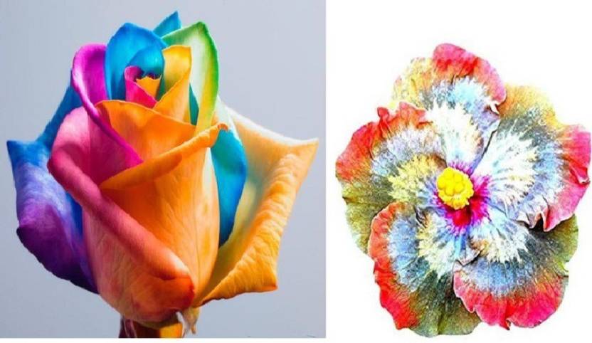 Elif Imported BEAUTIFUL RAINBOW ROSE PANT SEED + Imported GIANT RAINBOW HIB...