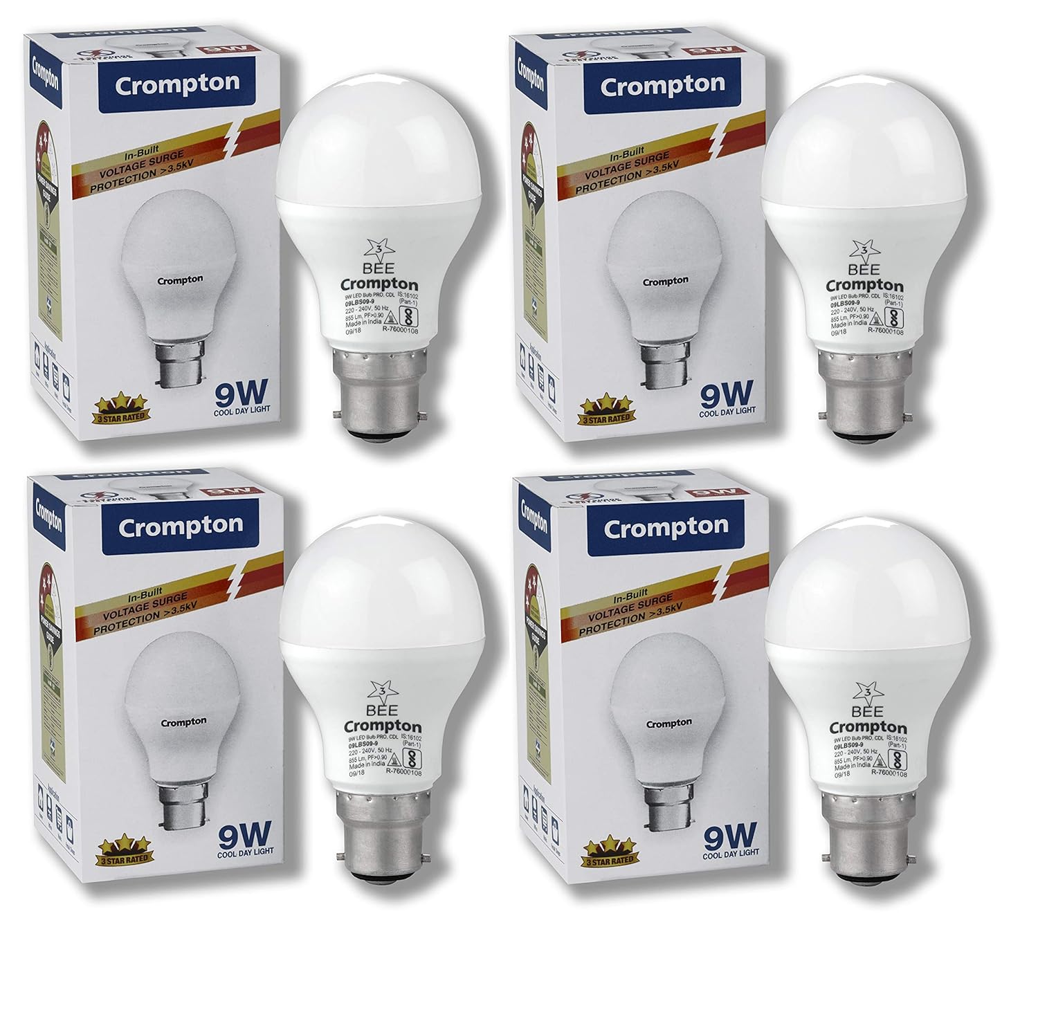 Crompton Base B22 9-Watt LED Lamp (Pack of 4, Cool Day Light)