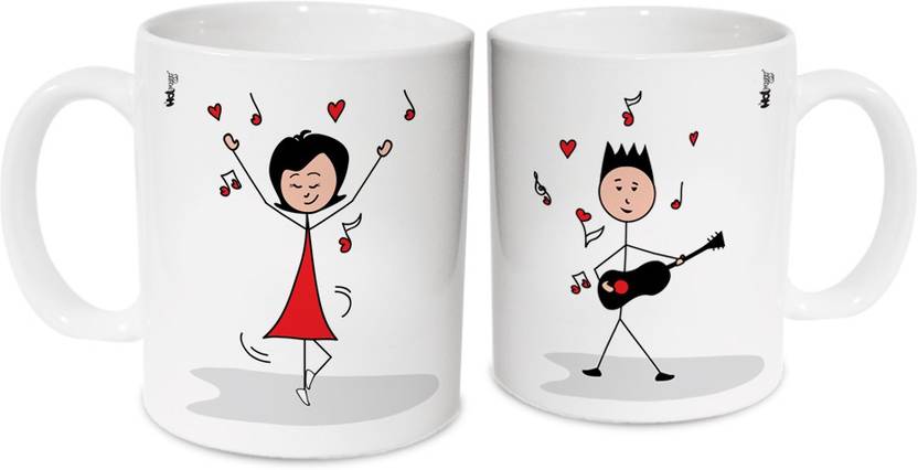 Hot Muggs U&Me - Swinging to your tunes Ceramic Mug (350 ml, Pack of 2)