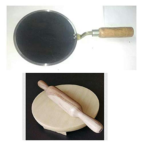 Generic Iron Roti Tawa with Wooden Chakla Belan