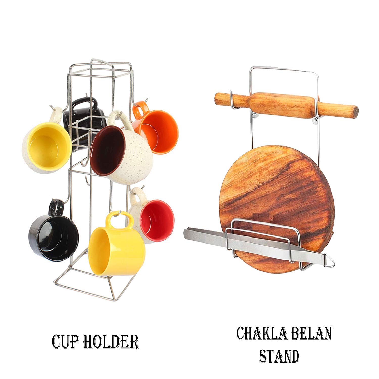 Pureus Utensils Holders Chakla Belan Stand & Rectangular Cup Holder Stand