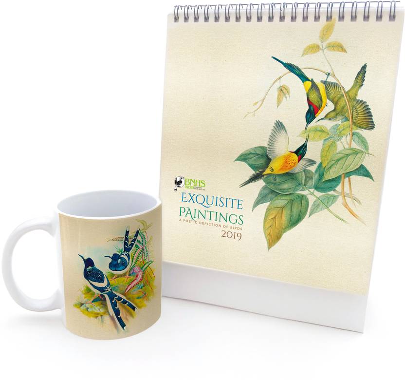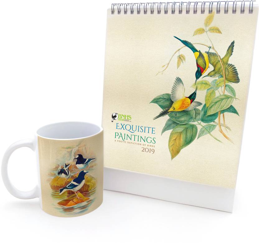 Hot Muggs Little Forktail -Calendar Paper, Ceramic Mug (315 ml, Pack of 2)