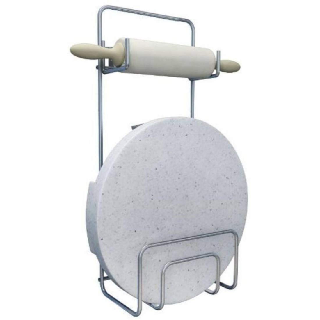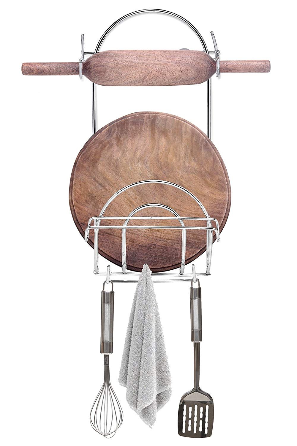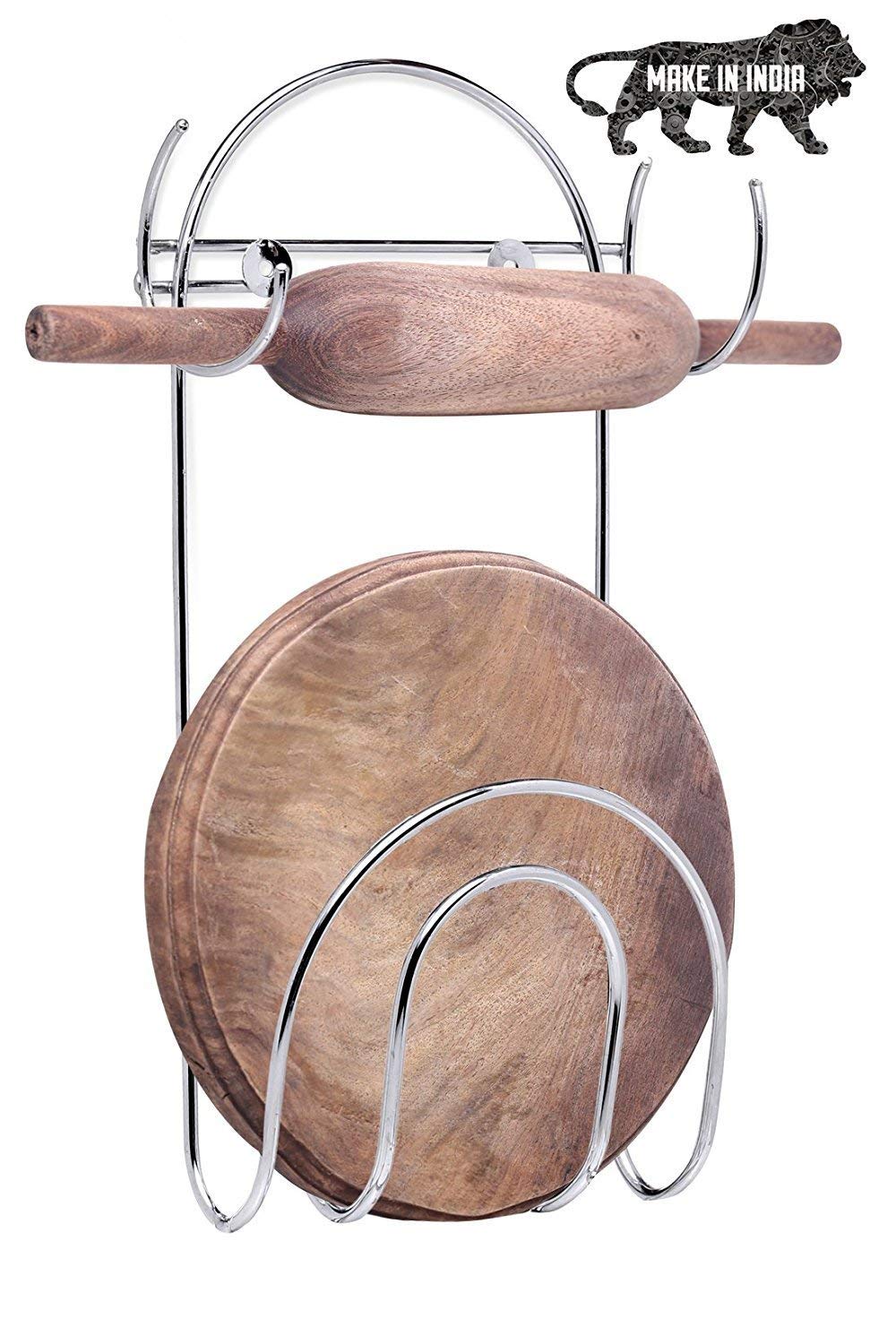Gadgets Appliances Plated Mild Steel Chakla Belan Stand with Hooks, Silver