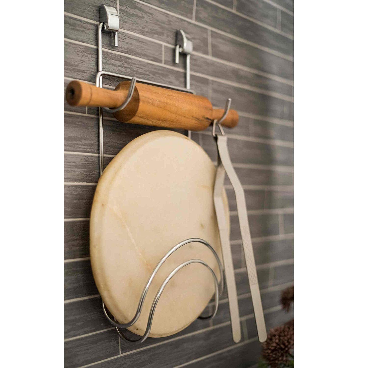 Rolling Pin Holder Chakla Belan Stand Stainless Steel Kitchen Rack (Silver)...