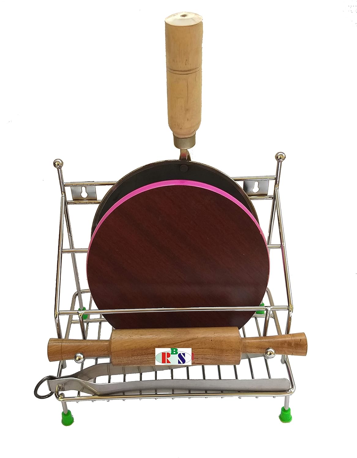 RBS Chakla Belan with tawa Stand Stainless Steel Kitchen Rack (Silver)
