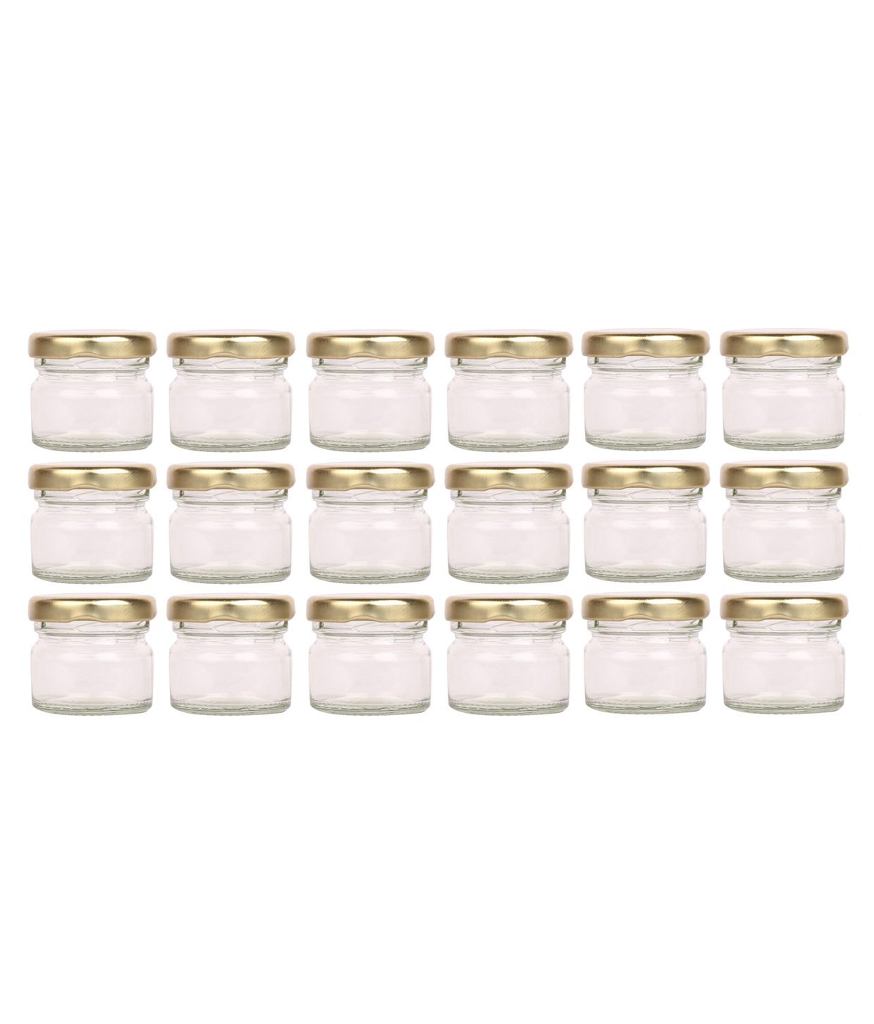 FAVOLA Small (Mini) Glass Jar Set of 18 Pcs with Metal Golden Color Airtigh...