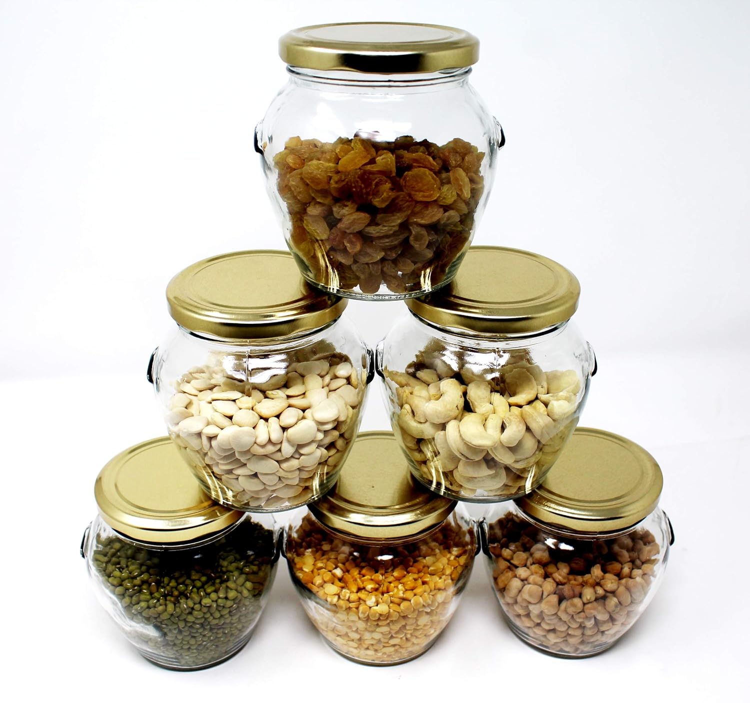 OM KRAFT SALEs 500 Ml Glass Jar with Air Tight Gold Lid for Kitchen Dried M...