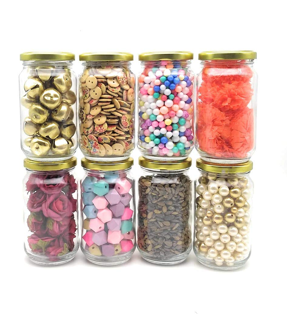 Satyam Kraft (Pack Of 8)Hexagon Glass Jar And Container(220 ml) With Rust P...