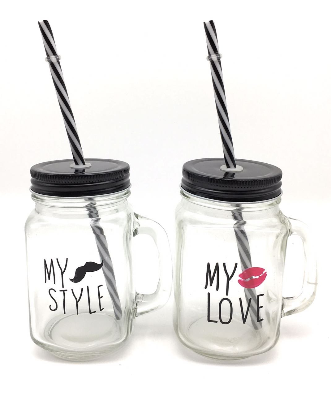 Satyam Kraft (Pack Of 2)My Style & My Love Mason Jar With Lid And Straw(500...