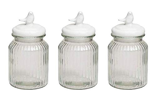 HOMIES INTERNATIONAL, Set of 3 Piece Decorative Food Storage Glass Mason Se...