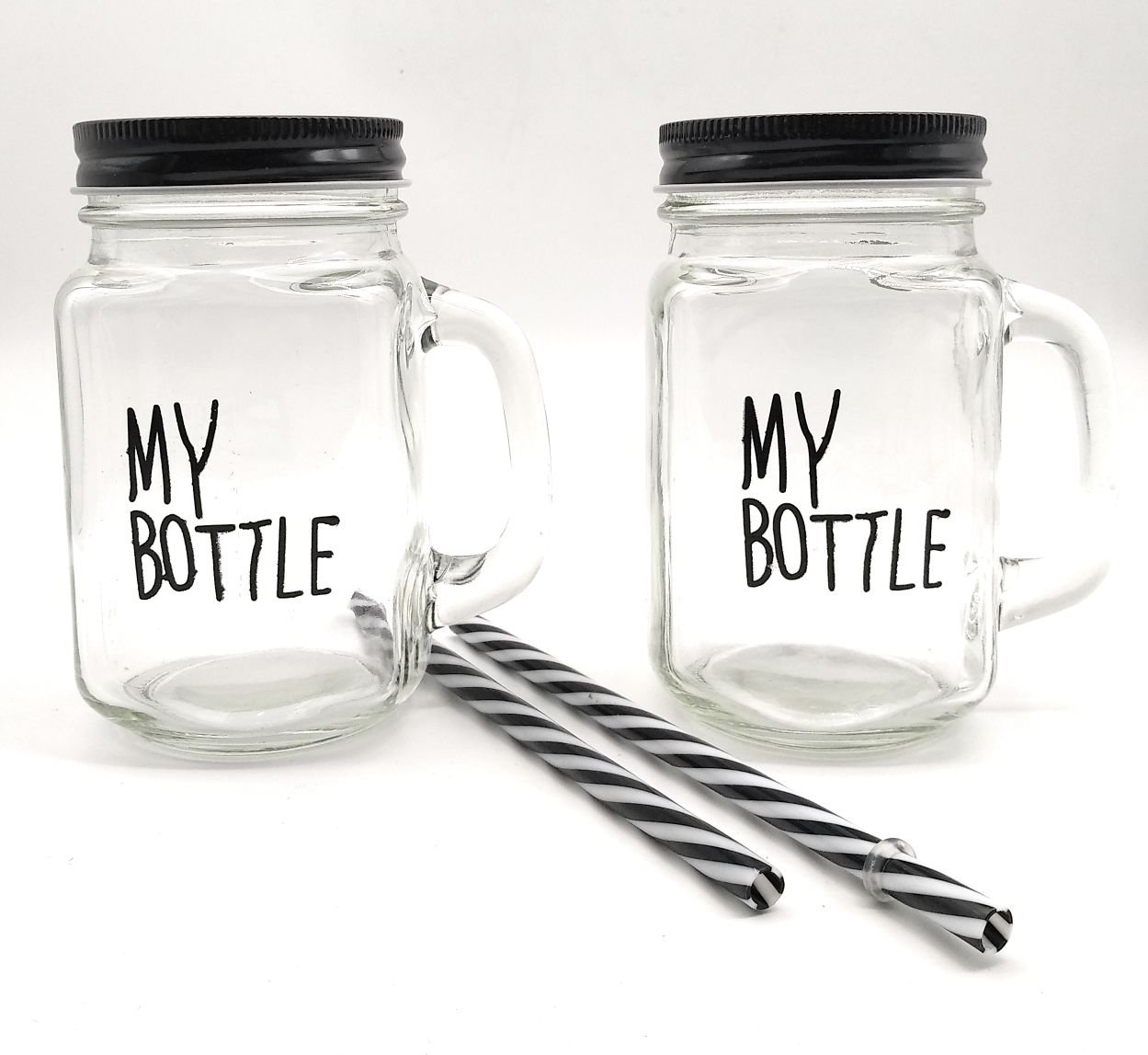 Satyam Kraft My Bottle Mason Jar with Lid and Straw, Transparent (500 ml) -...