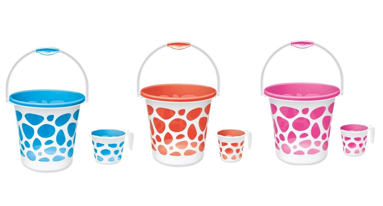 MILTON Duplex Plastic Buckets 20 L with Matching 1 L Mugs (Orange, Pink and...