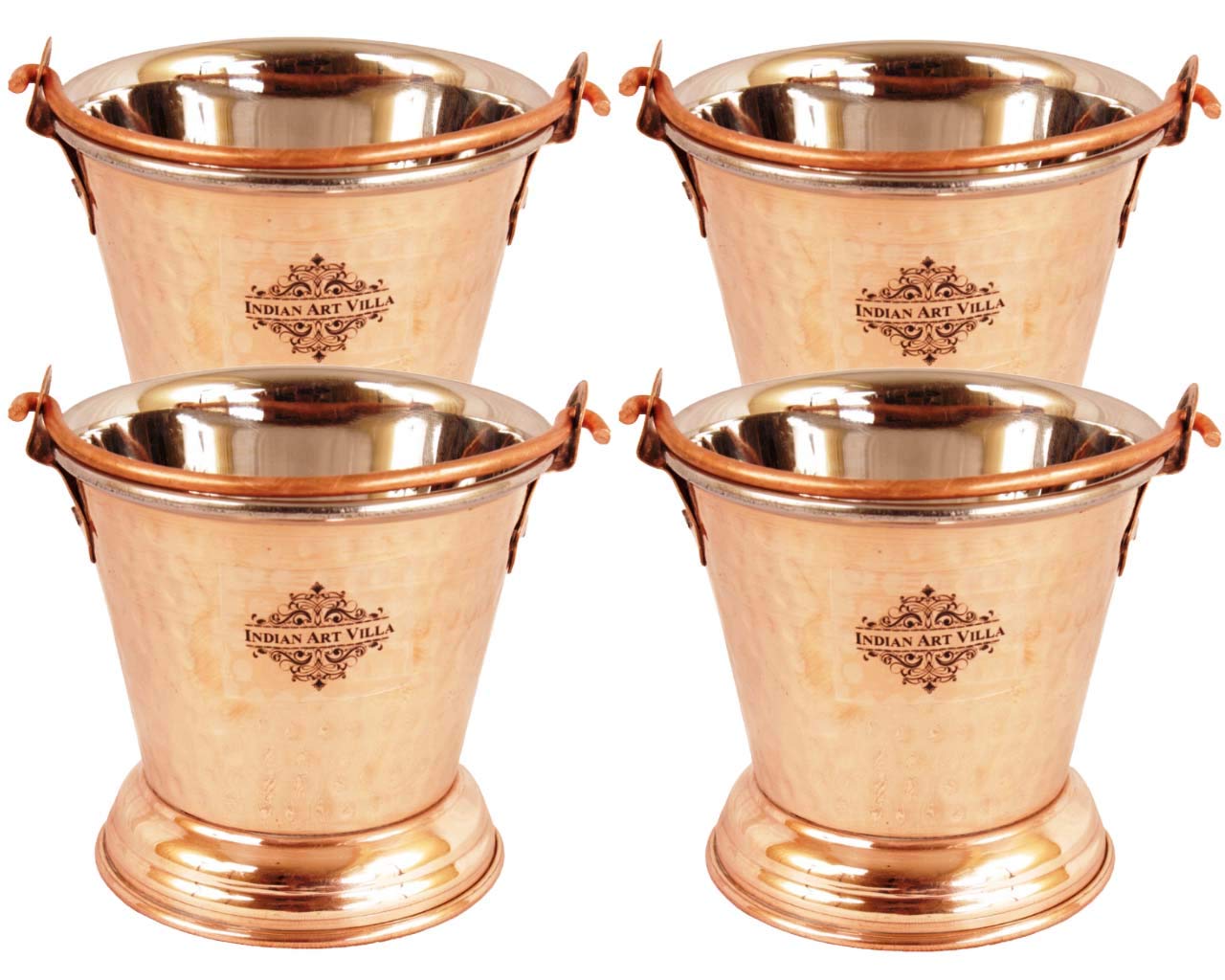 IndianArtVilla Set of Steel Copper Bucket Balti with 2 Serving Spoon, Serve...