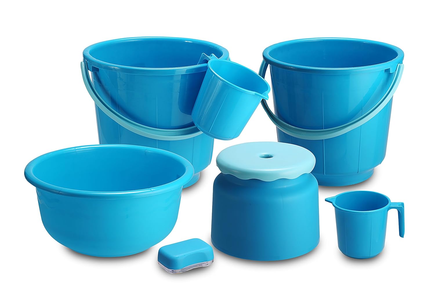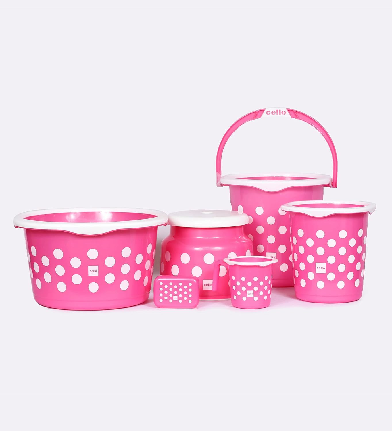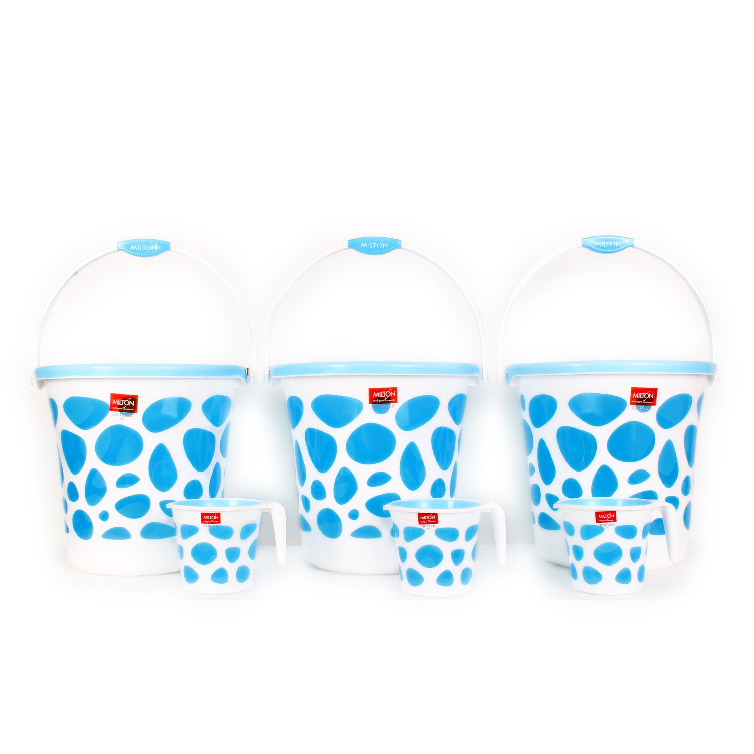 MILTON Duplex Plastic Buckets 25 L with Matching 1 L Mugs (Pink, Blue and O...