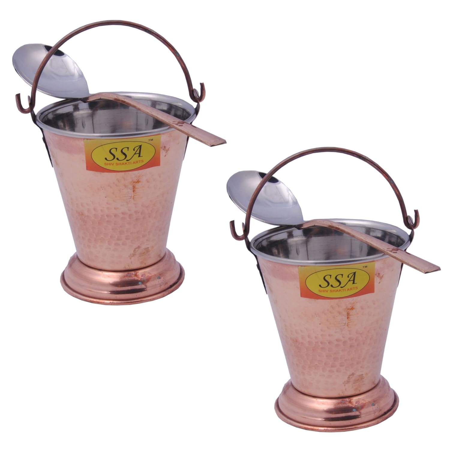 SHIV SHAKTI ARTS 11 x 10.5 X 6 cm Handmade Set Of 2 Traditional Steel Coppe...