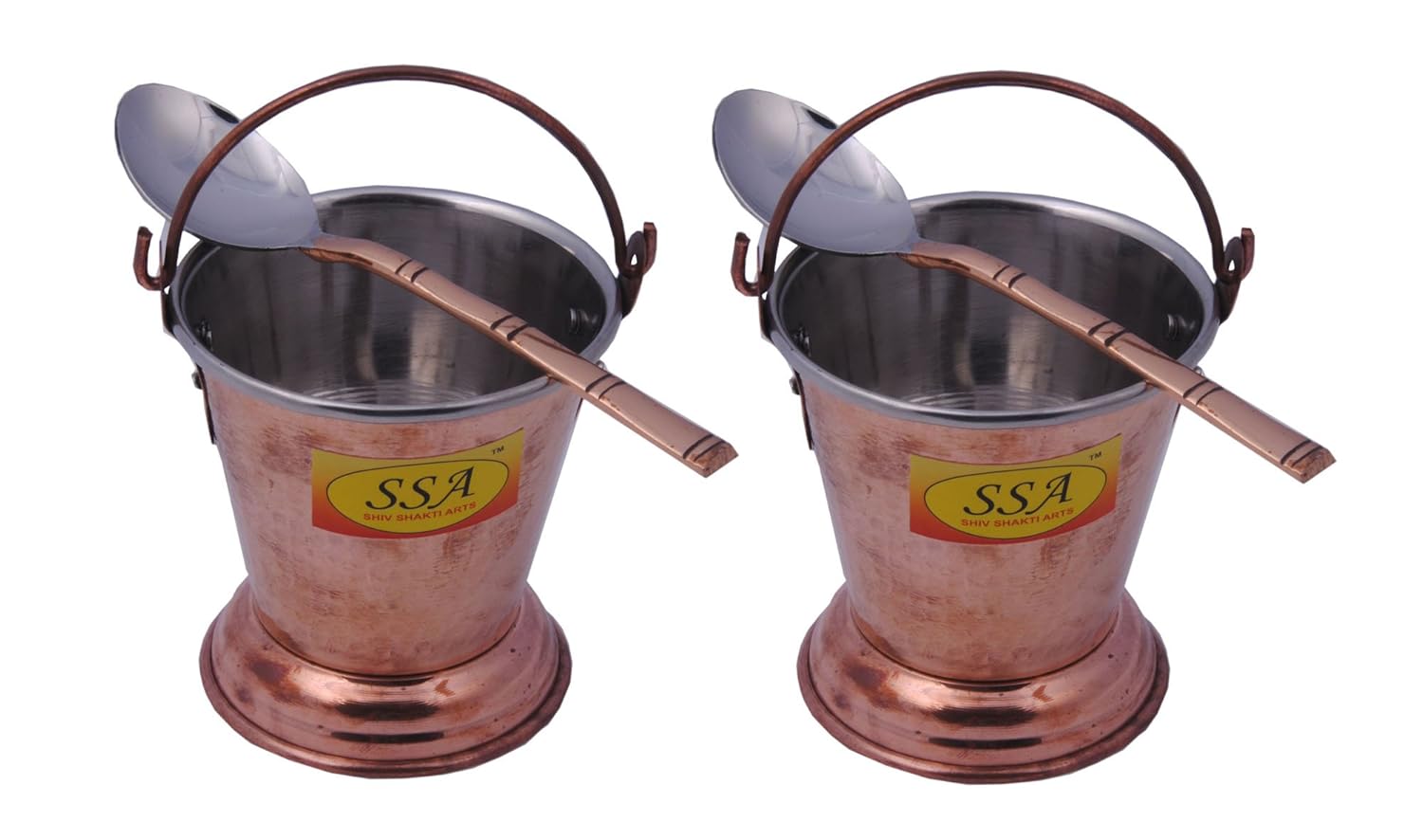 SHIV SHAKTI ARTS 15.5 x 13 X 10 cm Handmade Traditional Steel Copper Bucket...
