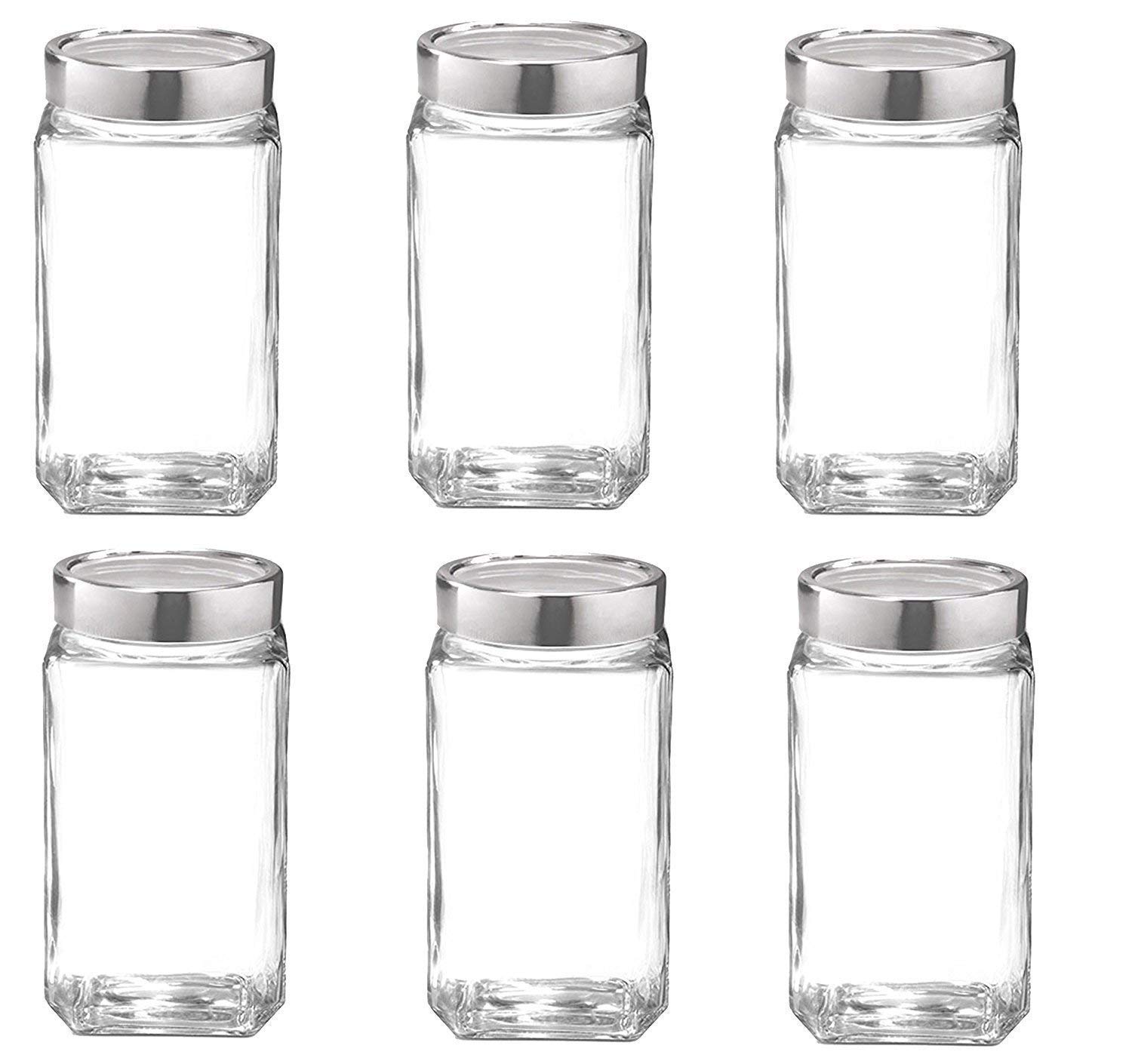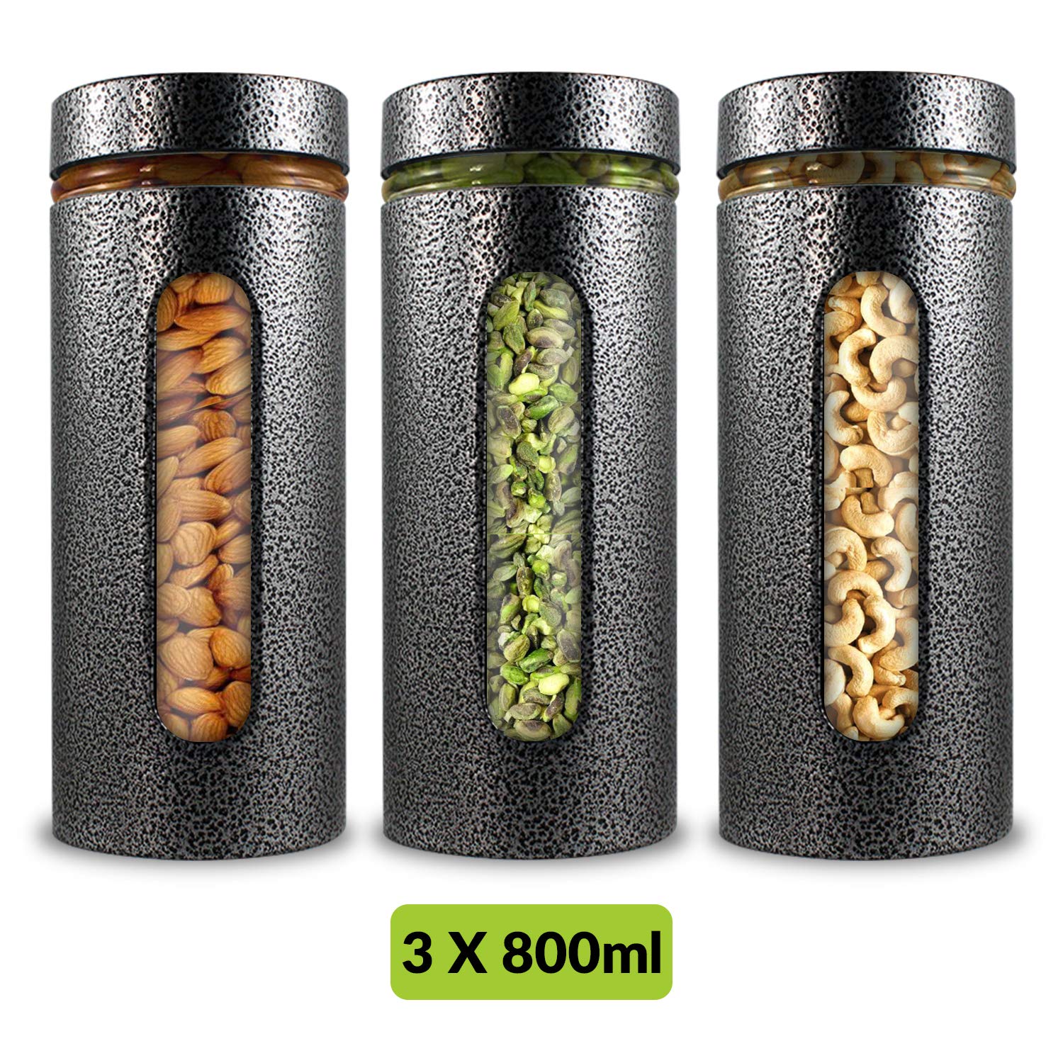 Home Puff Premium Airtight Metal Glass Canisters Set, 800ML, 3-Piece (Silve...