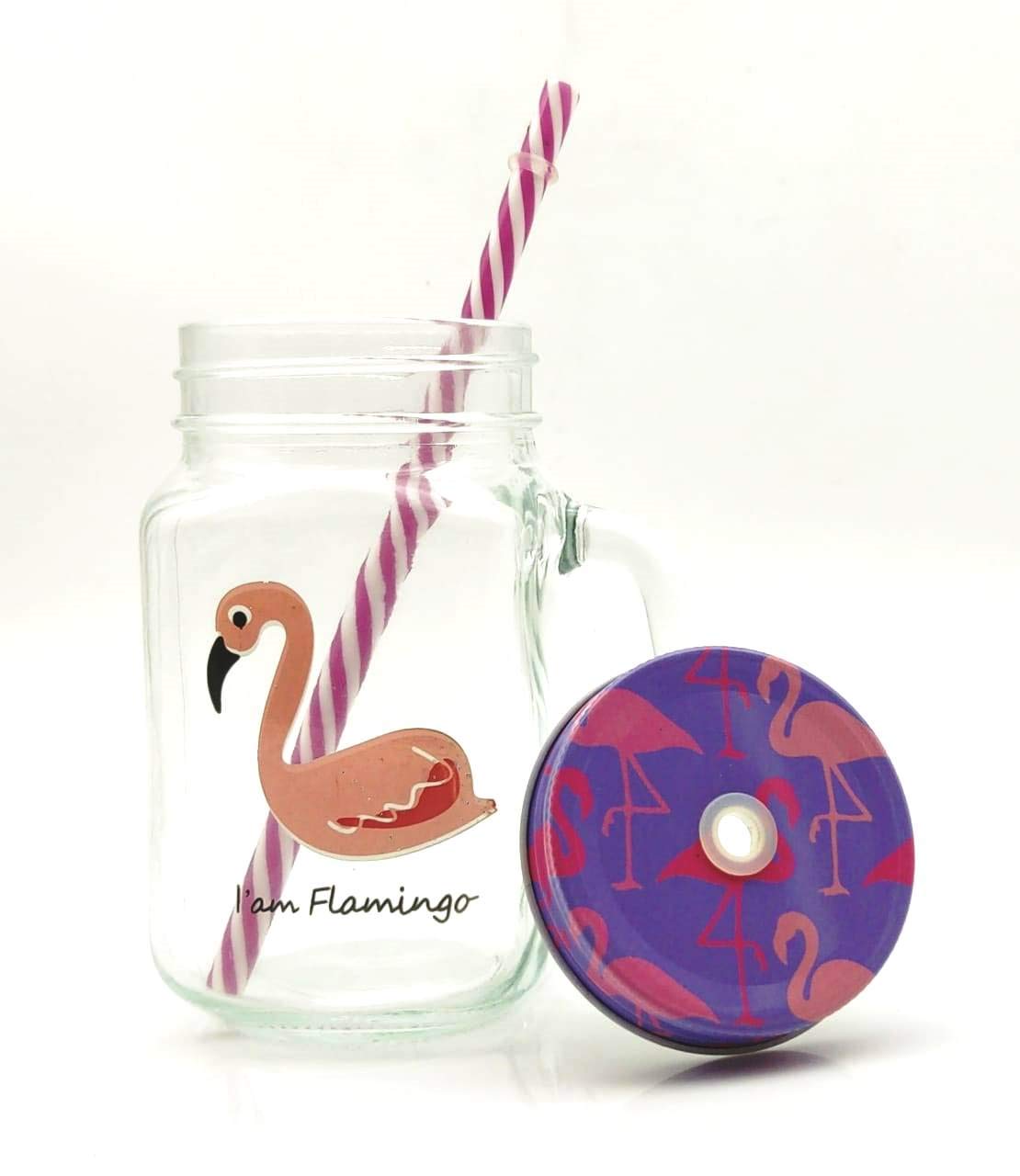 Satyam Kraft (Pack of 1) Flamingo Mason Jar with Lid and Straw- 500 ml, Gif...