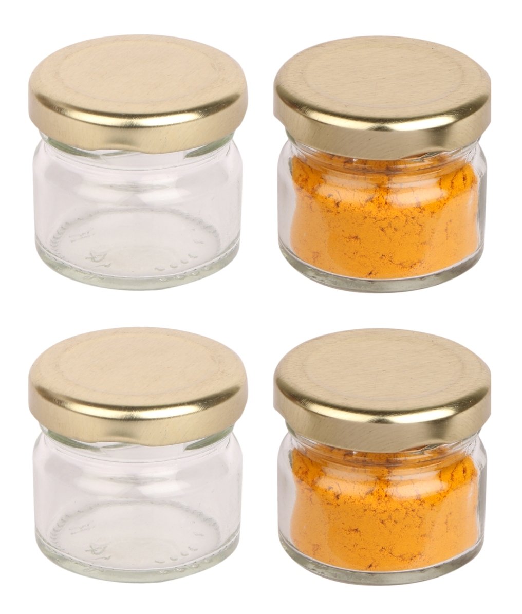Pure Source India Very Small Glass Jar Set Of 4 Pcs Coming With Metal Golde...
