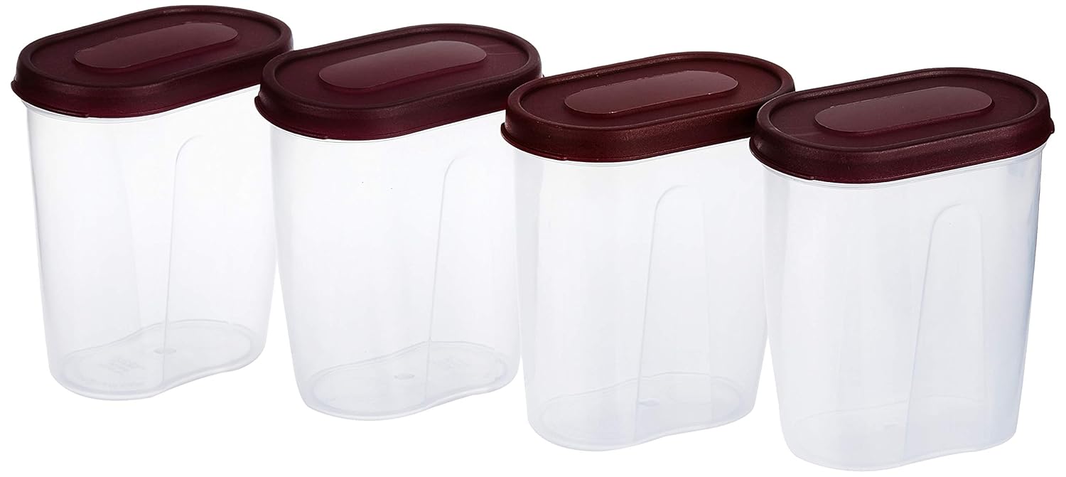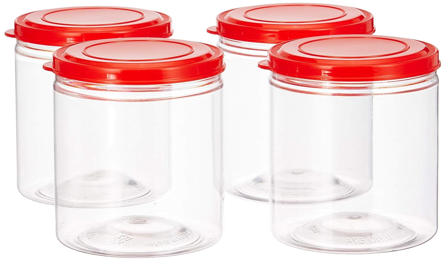 Amazon Brand - Solimo Set of 4 Grocery Jar (450ml), Red