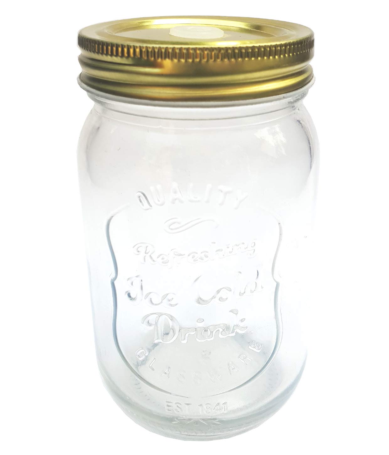 Favola Round Mason Jar with Airtight and Leak Proof Gold Lid, White Color, ...