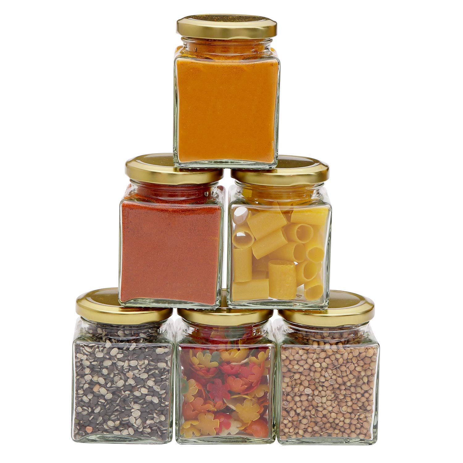 KITCHENGRAM 250 ML Glass Jar Square Shape with Metal Golden Color Cap Rust ...