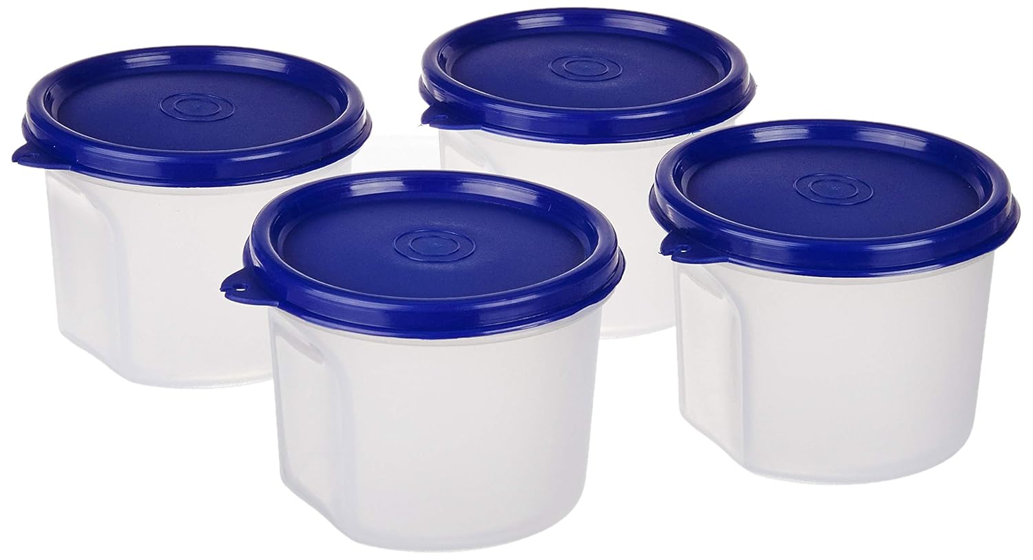 Amazon Brand - Solimo Round Plastic Container, 310 ml, Set of 4, Blue