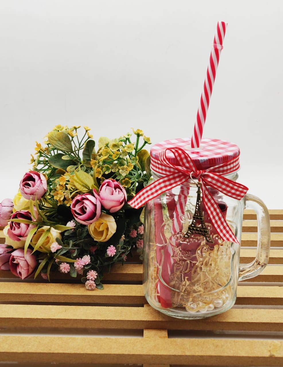 Satyam Kraft Glass Mason Jar With Folding Straw - 500 Ml (Red)