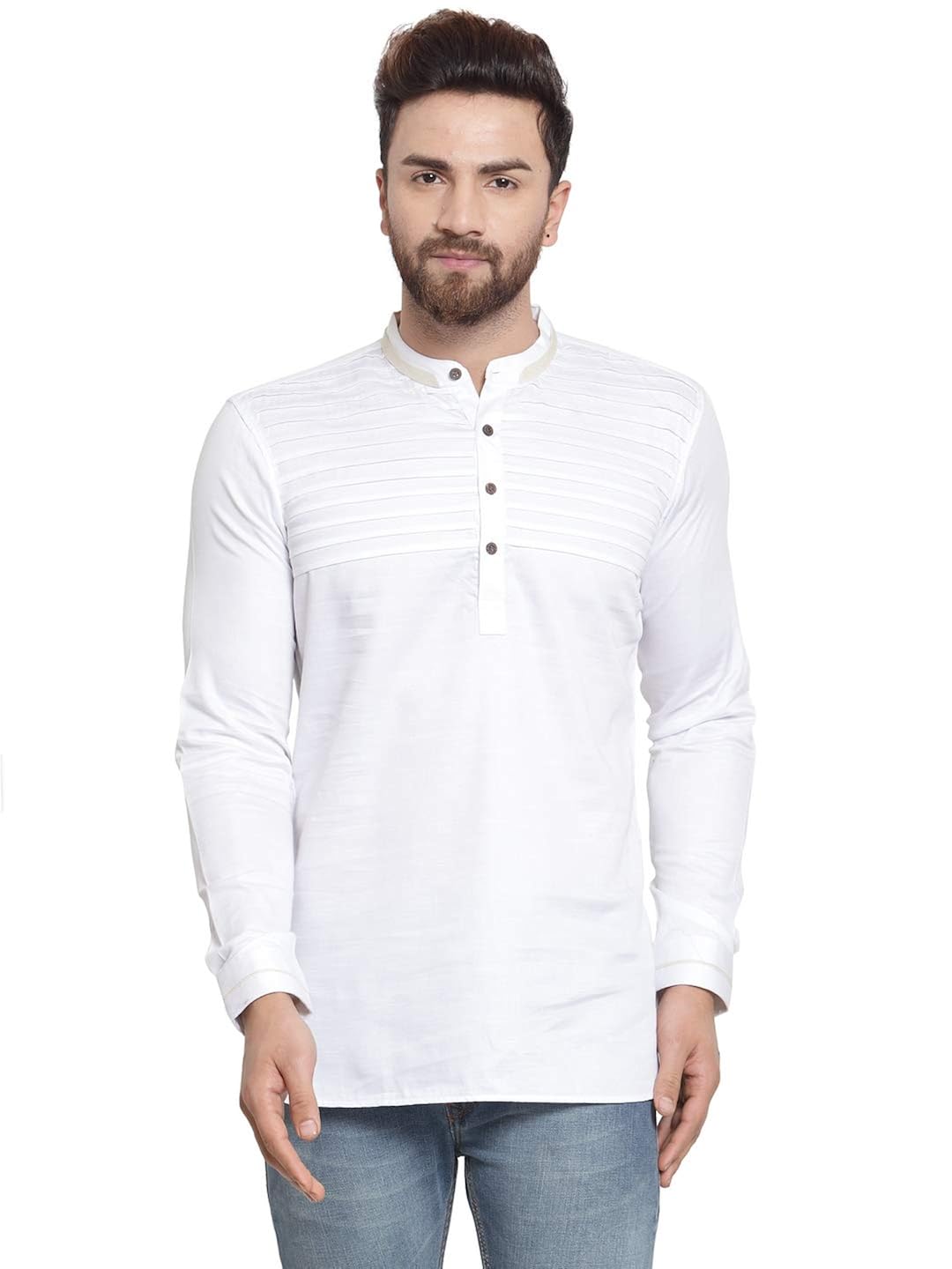 RG DESIGNERS Cotton Full Sleeve Designer White Short Kurta for Men