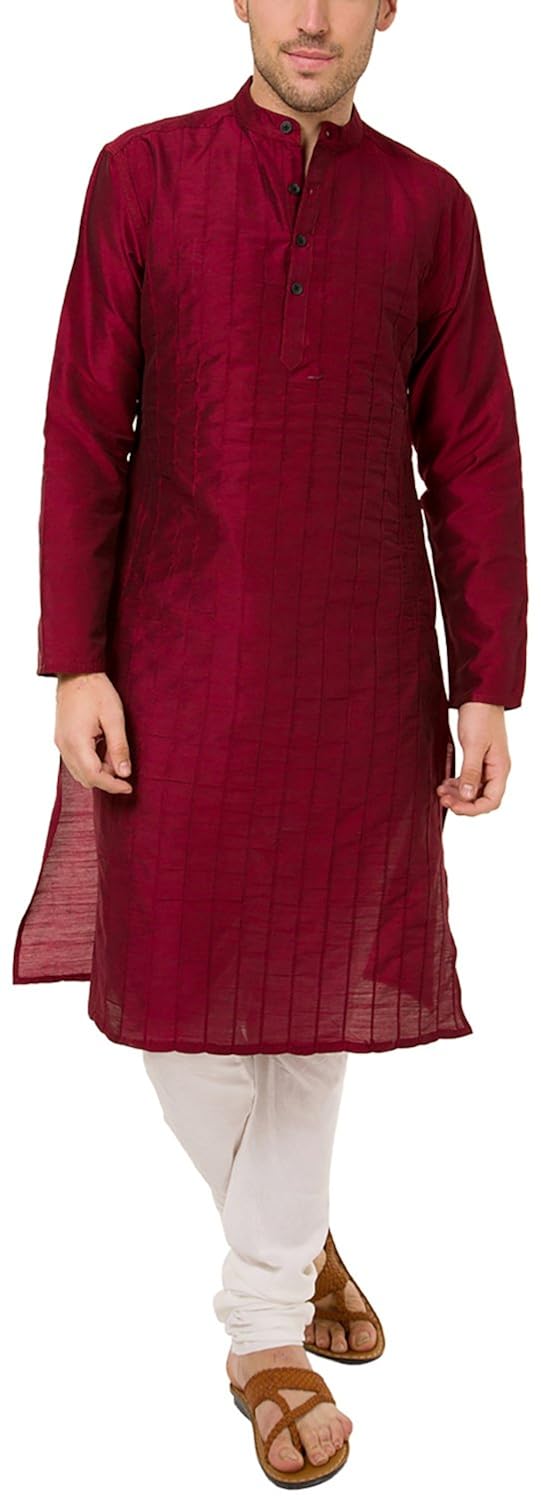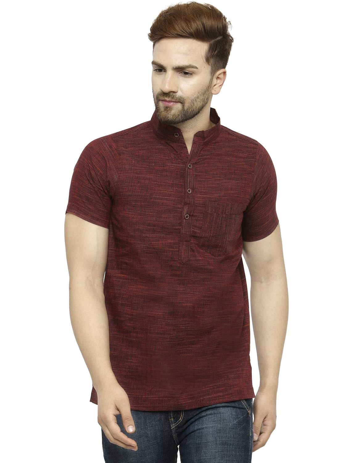 RG Designers Men's Full Sleeve Short kurta AVHandloomShort-Maroon