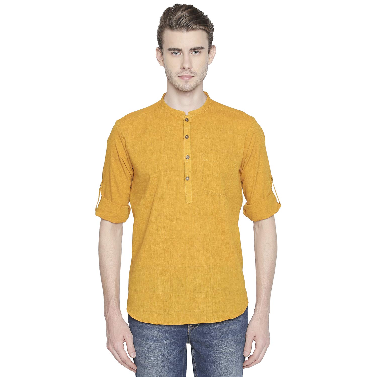 Indus Route by Pantaloons Men's cotton Kurta 110049618 Mustard Small