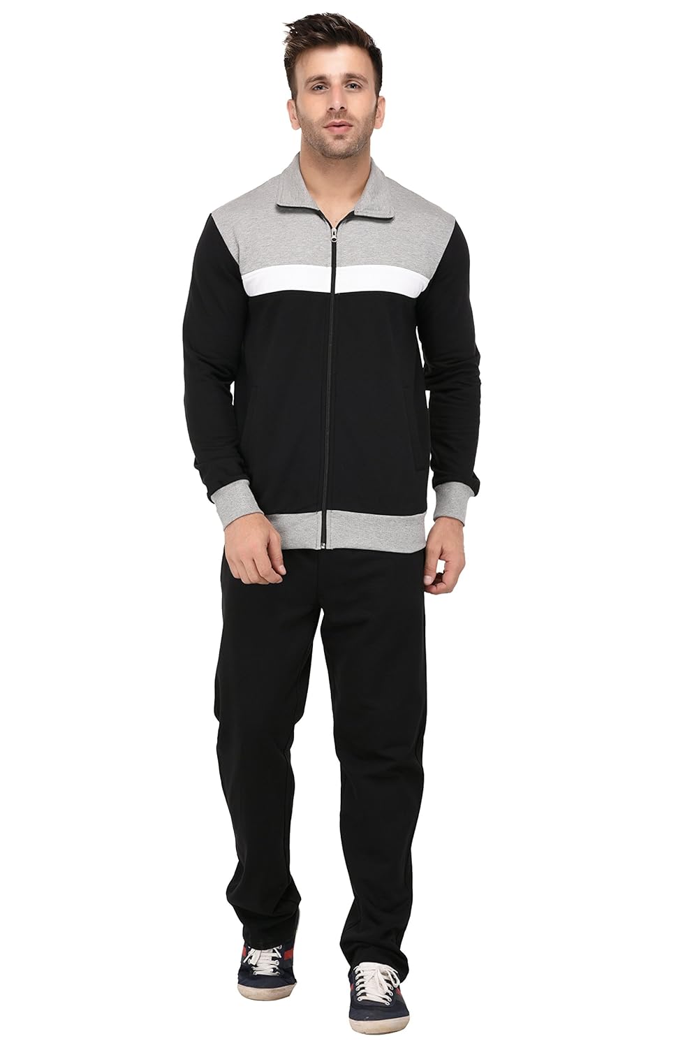 REAL FASHION Men's Poly Cotton Solid Tracksuit, Style: TNG