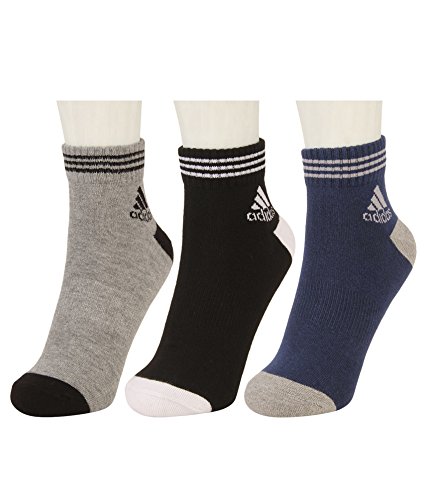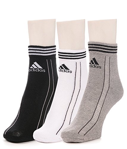 Adidas Unisex Cotton Combo Of 3 Ankle Socks Pair (Black, White, Grey_Medium...