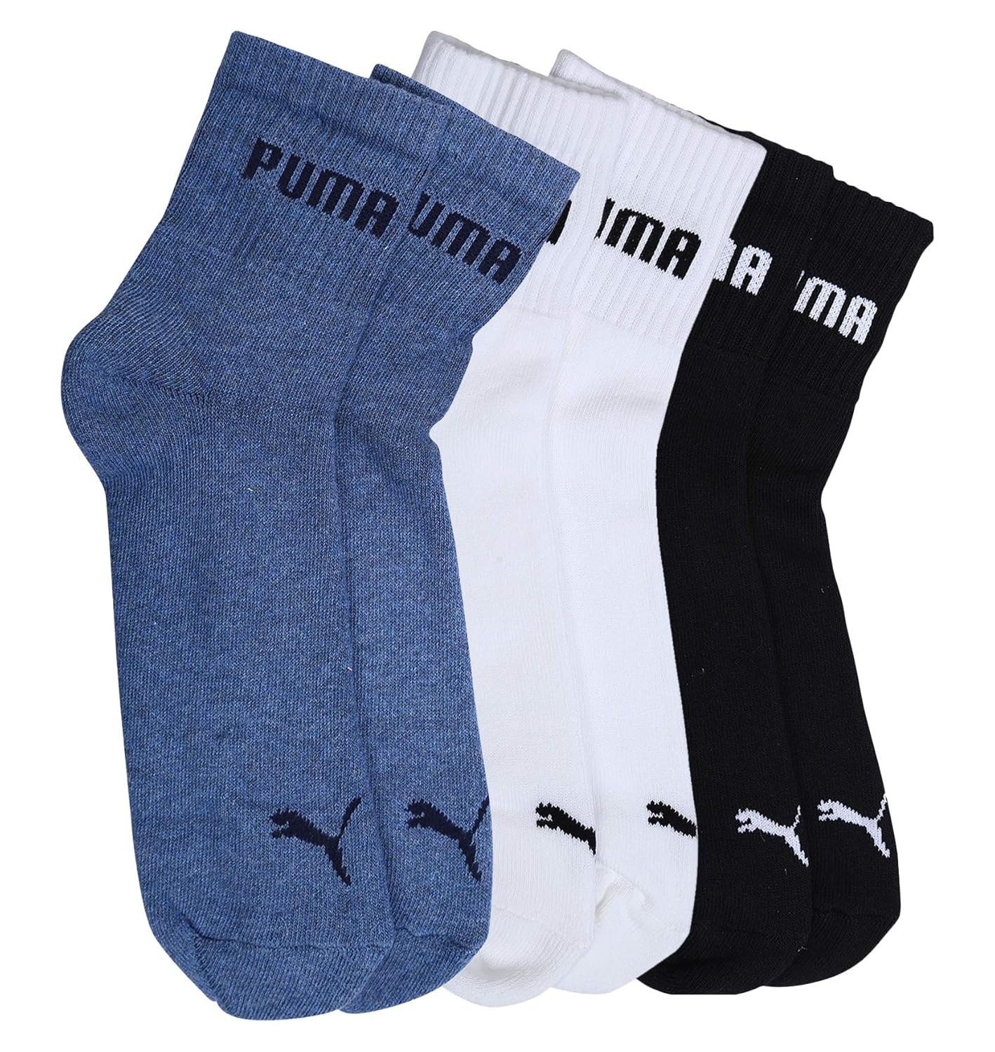 Puma Men's Cotton Ankle Socks (Black, White, Denim) -Pack of 3