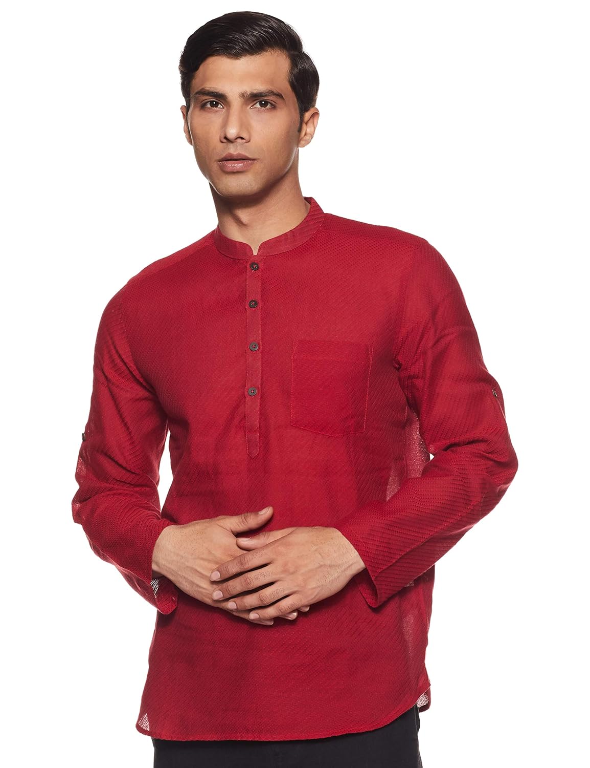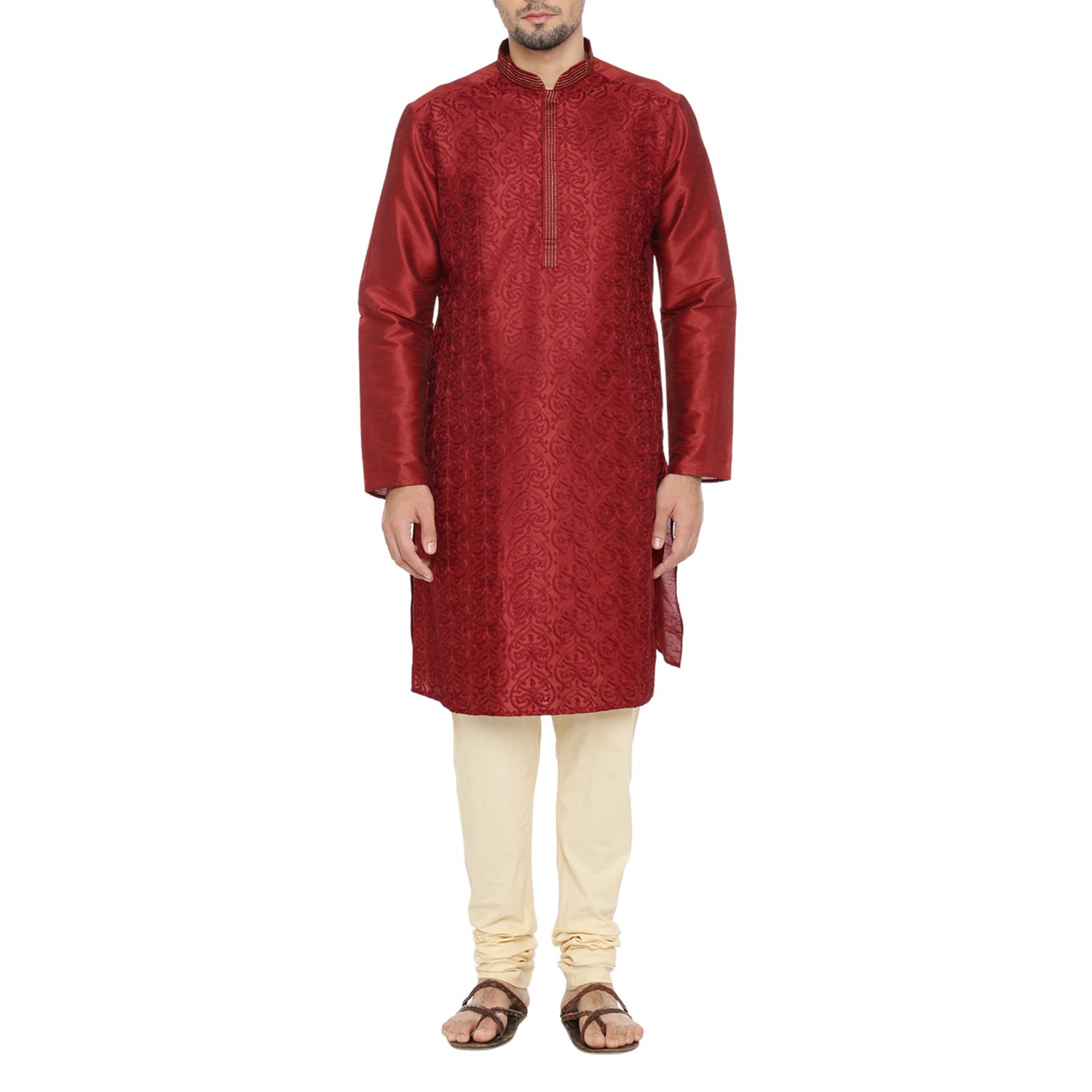 Indus Route by Pantaloons Men's Cotton Kurta (110049624_Maroon_Medium)