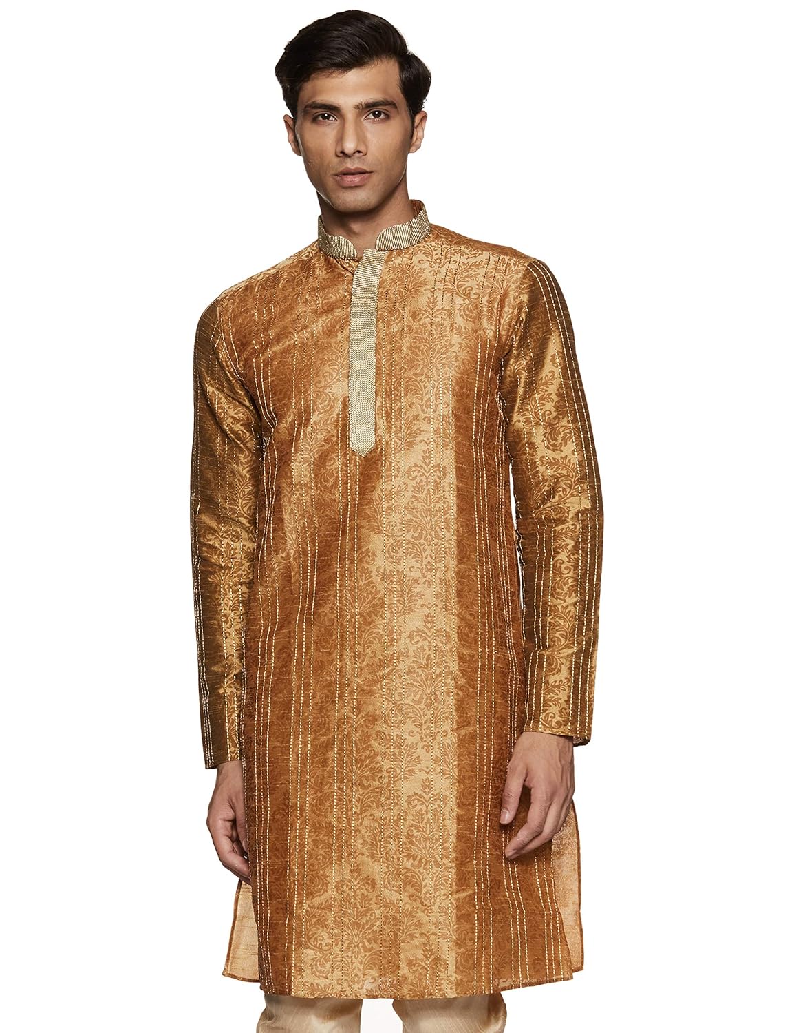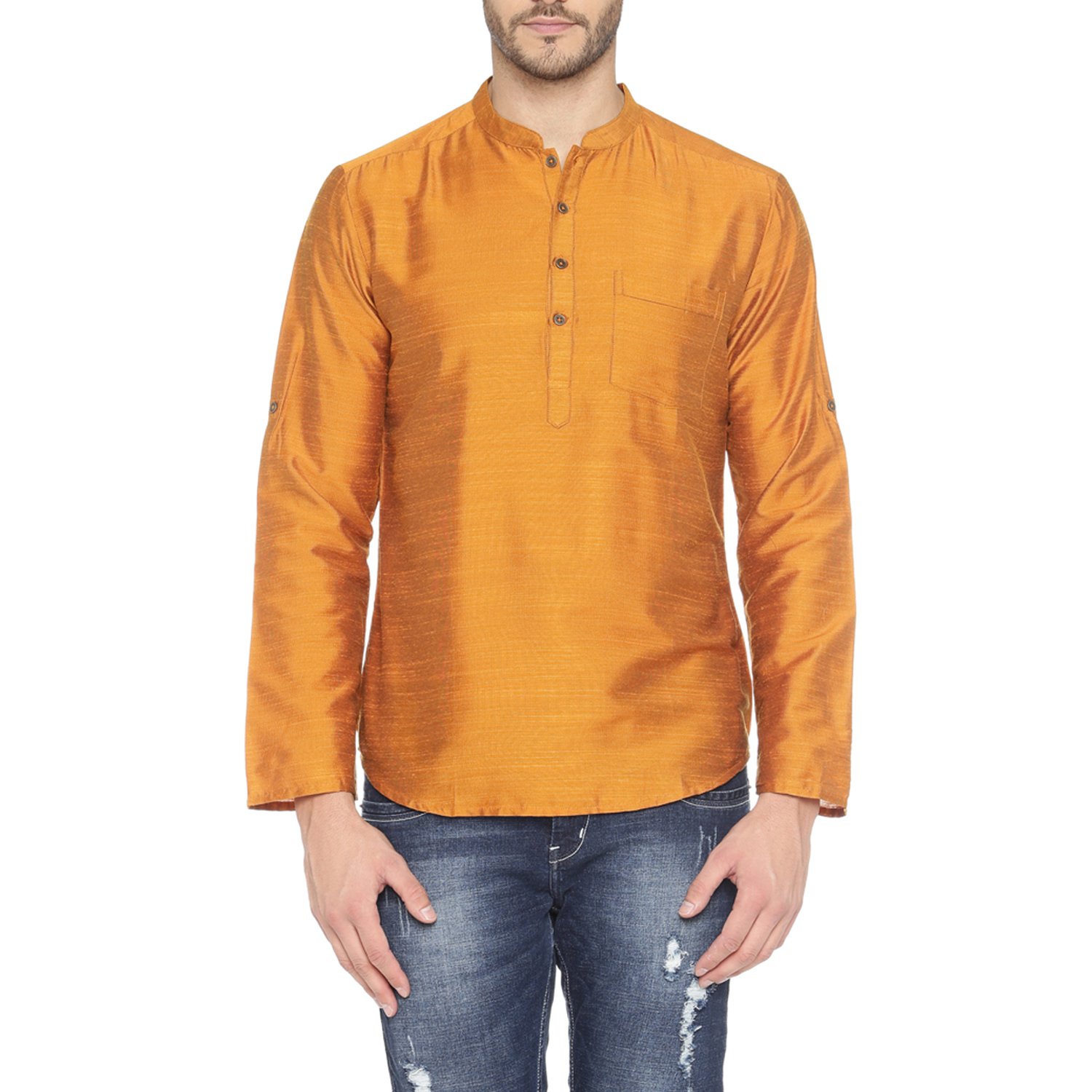 Indus Route by Pantaloons Men's Cotton Kurta (110049629_Mustard_Small)