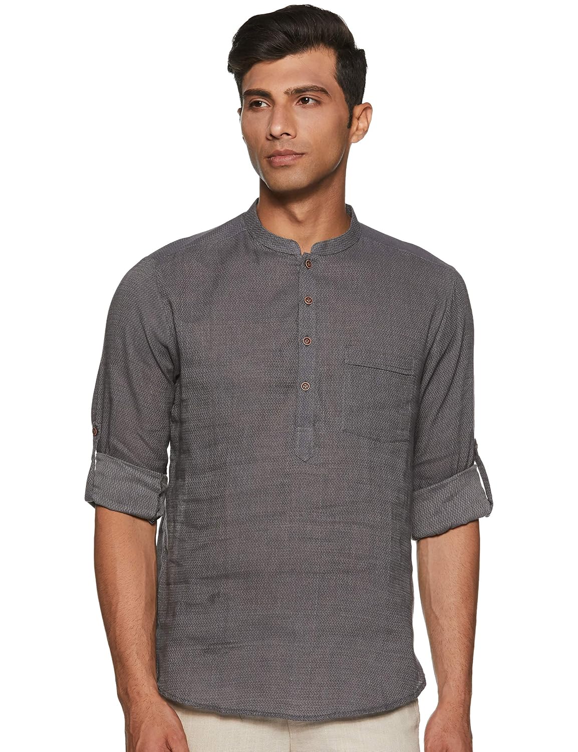 Indus Route by Pantaloons Men's Cotton Kurta (110049618_Charcoal_X-Large)