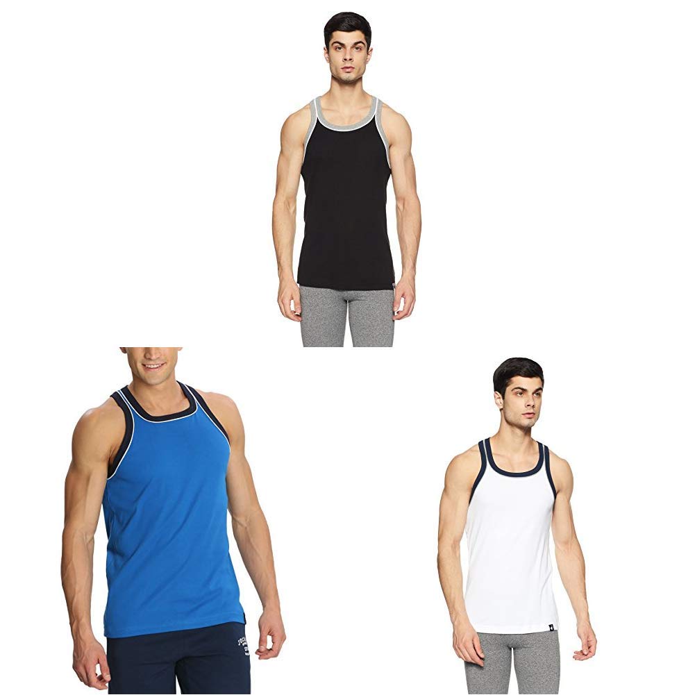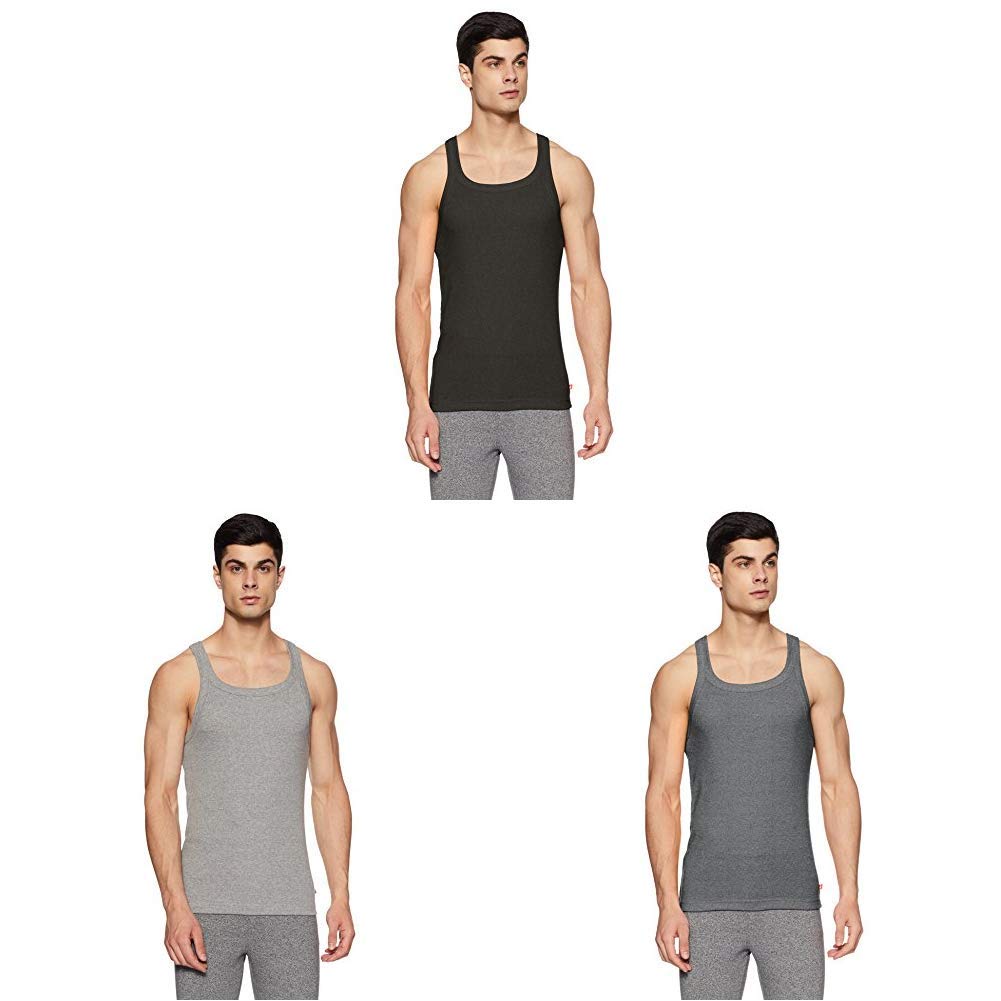 Jockey Men's Cotton Square Neck vest US26(Assorted Pack of 3)(Colors May Va...